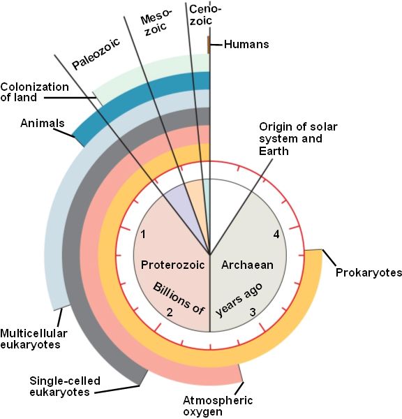 This clock scales Earth's history of 4.6 billion years to one hour.