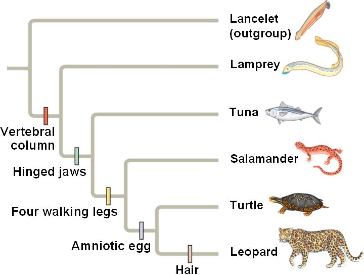 A phylogenetic tree shows evolutionary relationships by homology.