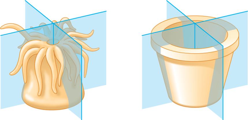 The parts of a radial animal, such as a sea anemone (phylum Cnidaria), radiate from the center.