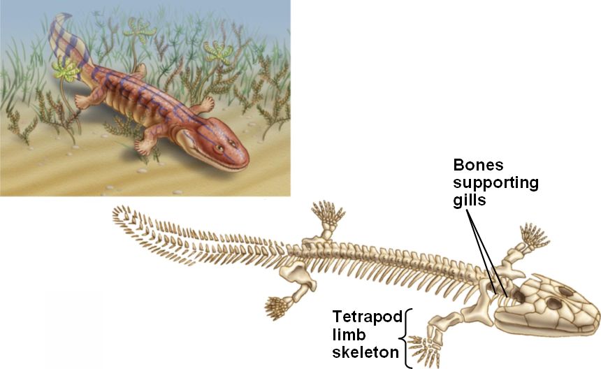 from the Devonian period (365 MYA) had limb-like fins but also retained aquatic adaptations such as