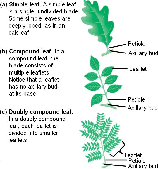 Simple and compound leaves.