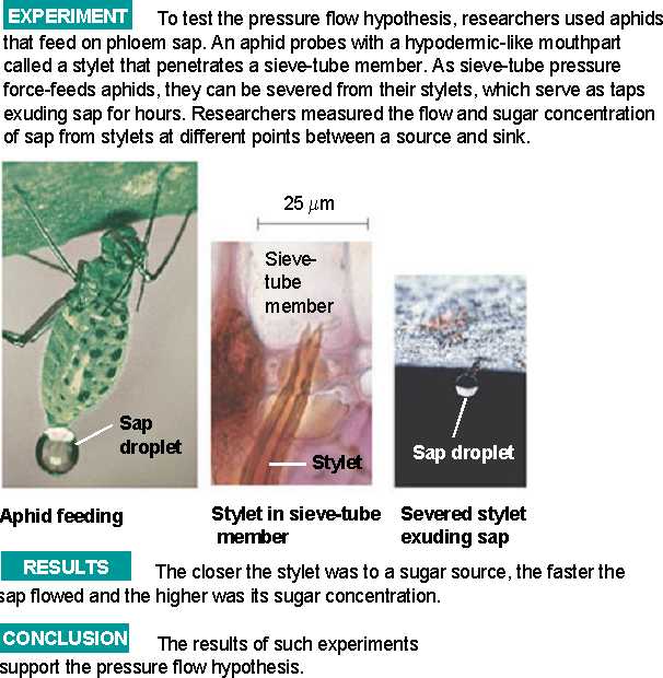 Pressure flow is demonstrated in this experiment with aphids