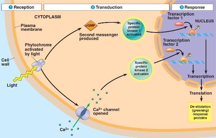 Light activates a receptor molecule, a pigment called phytochrome.