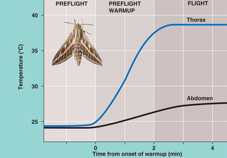 Preflight warmup in the hawkmoth.