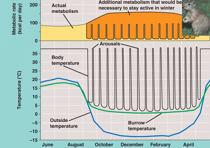 A long-term reduction in body temperature allows the animal to survive with very low energy expenditure.