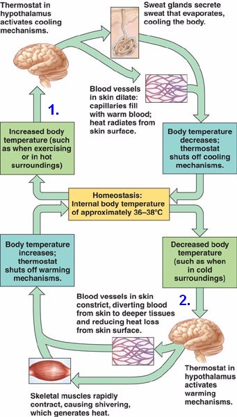Thermoregulation by the hypothalamus.