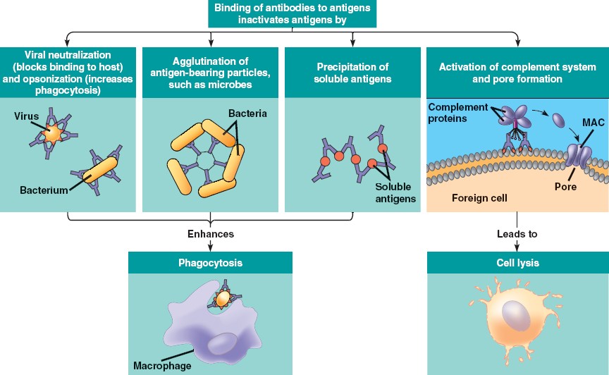 Antibodies and proteins of the complement system generate a membrane attack complex(MAC).
