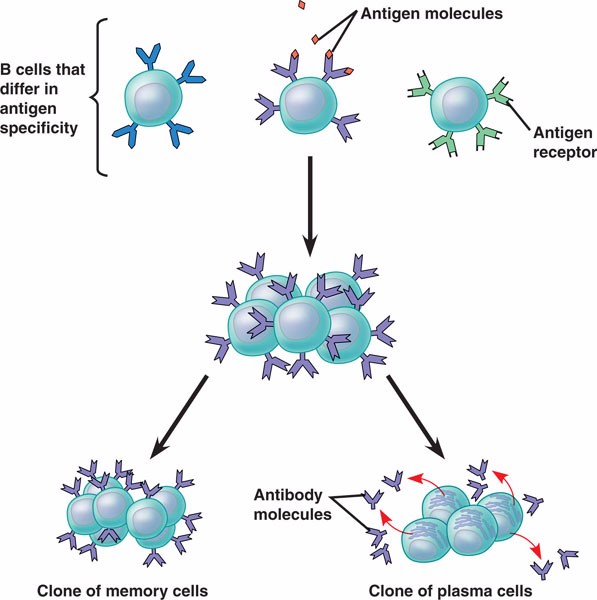 The clone of B cells differentiate into