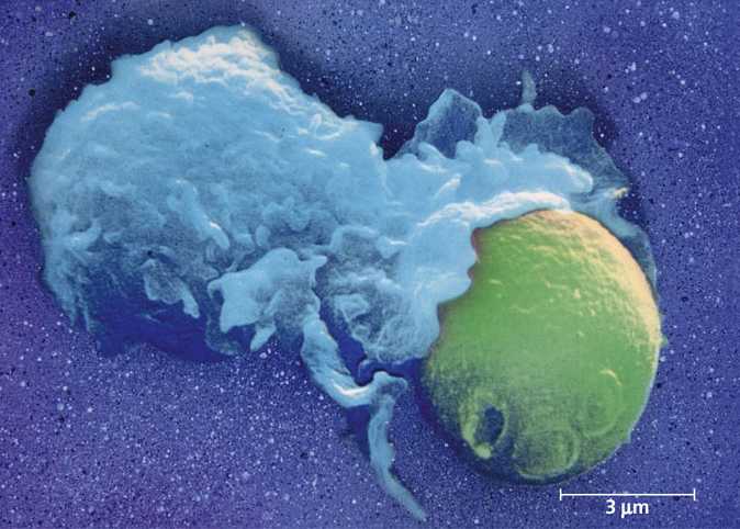A macrophage ingesting a yeast cell.