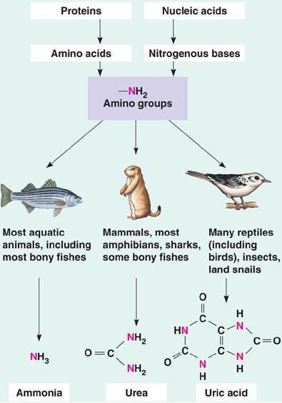 Mammals use energy to convert ammonia to the less toxic urea, which is excreted in urine.