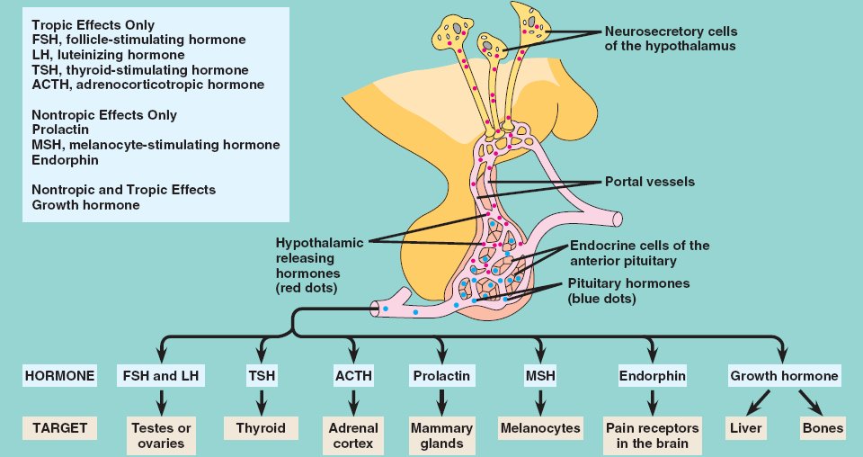 Many adenohypophysis hormones in turn have tropic effects by regulating other hormones.