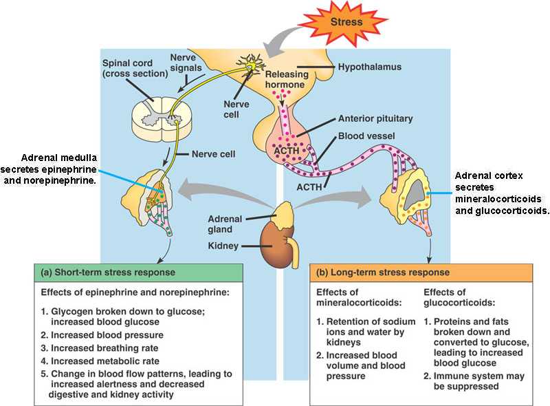 The adrenal glands respond to