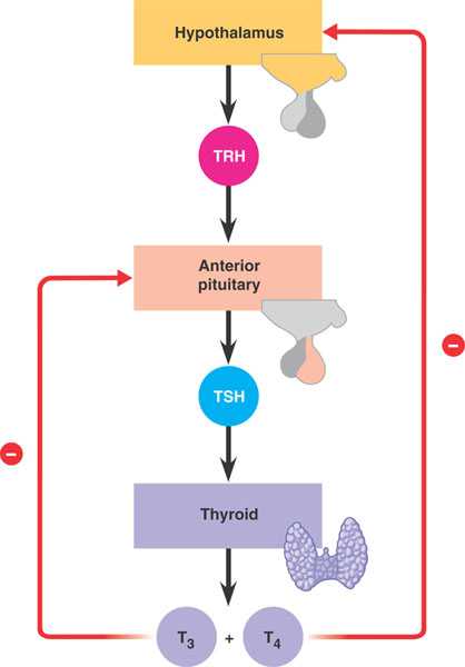 Negative feedback in thyroid hormones.