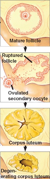 The corpus luteum secretes progesterone and estradiol to promote thickening of the endometrium, in preparation for pregnancy.