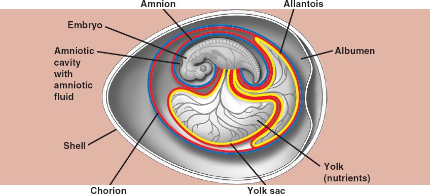 Amniotic egg of a bird and other reptiles.