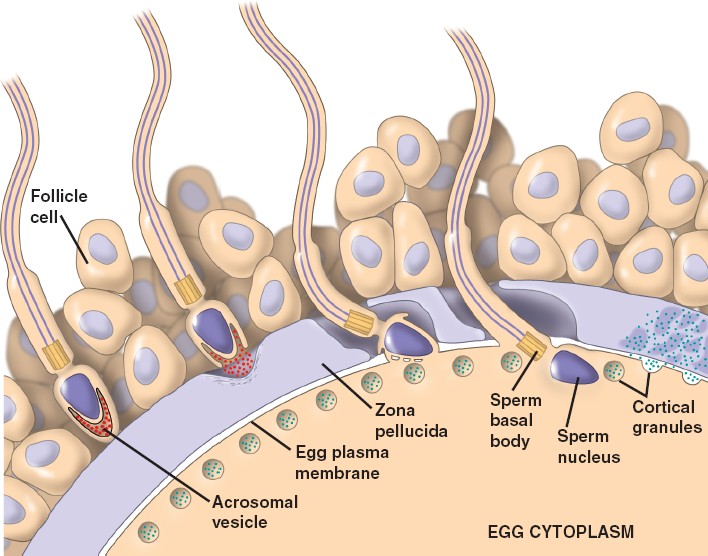 - The plasma membranes of the two gametes fuse, allowing the whole sperm to enter the egg.