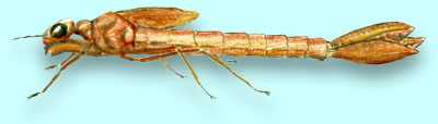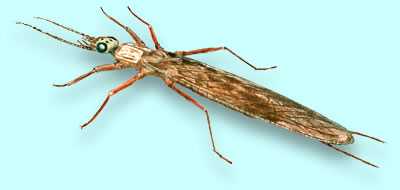The adults are distinguished by a pair of long wings that have many veins.