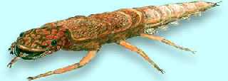 The larvae have elongated bodies that are slightly flattened. The wingpads and three pairs of legs are on the thorax.