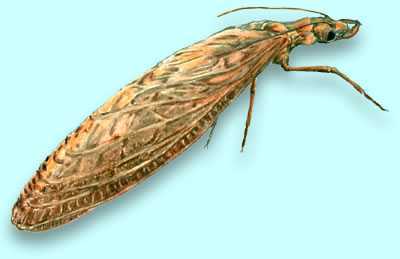 Stoneflies, order Plecoptera, are distinguished by two long thin tails projecting from the rear of the abdomen.