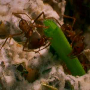 32:35 Japanese Red Bug juveniles only eat fruit from one type tree. Mother searches for ripe fruit, but stolen by another female. Her young abandon the nest to live with the thief mother, who works to death feeding the broods. Her dead body becomes final meal 36:55 Dawson's Burrowing Bee males fight to death to mate with females emerging from burrows, decapitating a female by accident (Australian outback) 41:20 Grass-cutter Ants bring cut grass to nest. Cultivate fungus garden to feed 5-million colony. Ventilation system: opening faces prevailing winds to release excess carbon dioxide (Argentina)