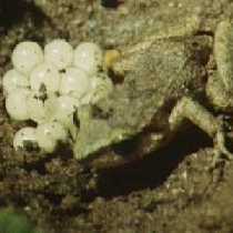 | 42:30 | Whistling Frog lays eggs on ground (Caribbean) | 44:15 | Midwife Toad male carries eggs on its legs (Europe) | 44:35 | Surinam Toad male places eggs on female's back |